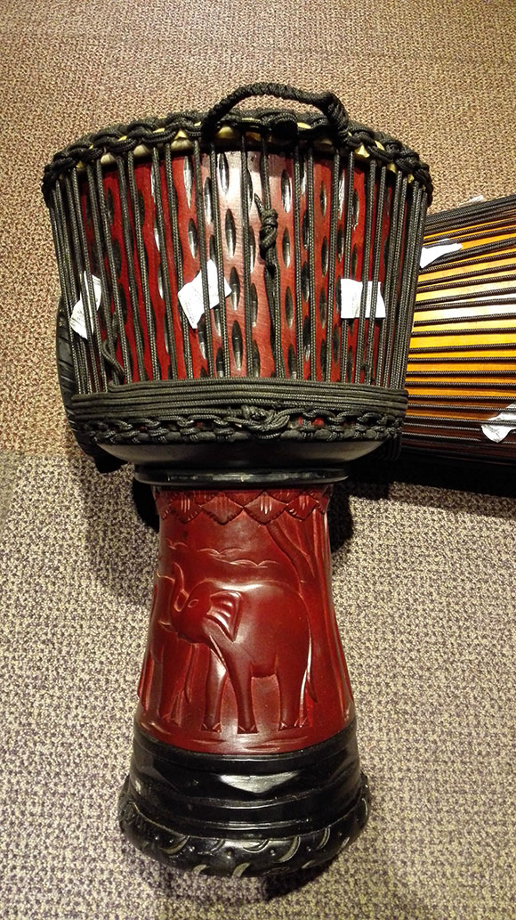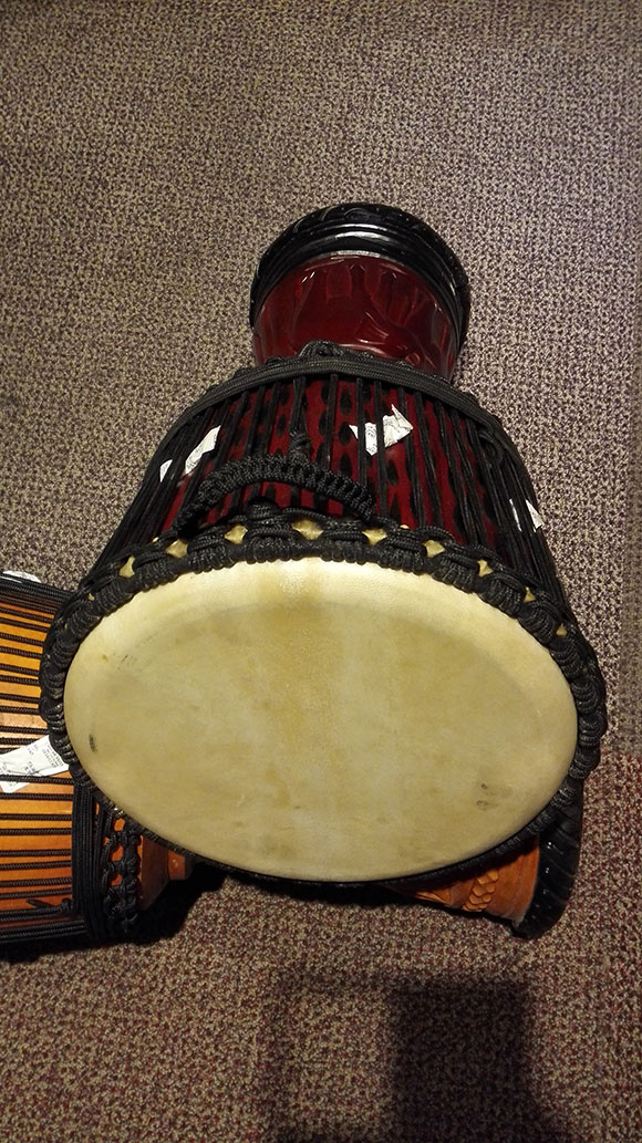 l Dorjee(多杰)非洲鼓在印尼生產,印尼生產的全部采用桃花心木制作,并且是整木掏空的,鼓腔上分別有不同圖案的精美雕刻。